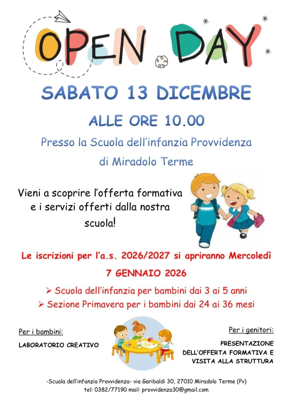 A partire dal giorno 7 Gennaio 2026, (giorno di apertura alle iscrizioni all'Asilo Infantile Provvidenza) contestualmente alla presentazi...