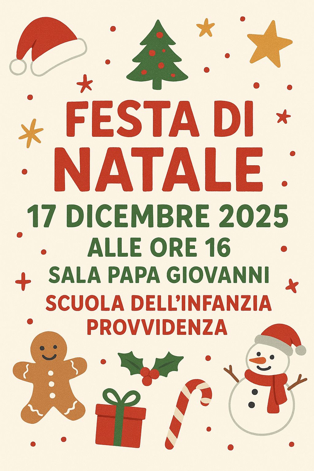 Siamo liete di invitarvi alla festa di Natale dei bambini della scuola dell’infanzia che si terrà in Sala Papa Giovanni alle ore 16,00, MERCOLEDÌ 17 DICE...